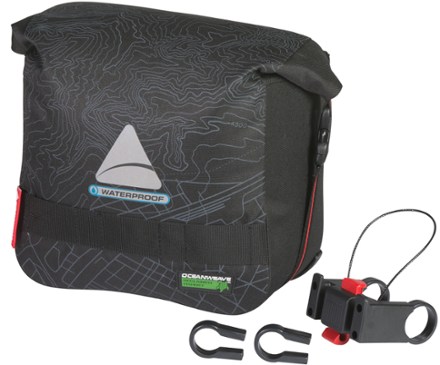 Oceanweave 600D recycled fishnet polyester with. Included shoulder strap makes it easy to take the bag with you when you park your bike. Keep essentials at your fingertips while you ride with the Axiom Cycling Gear Seymour Oceanweave P7 handlebar bag. Axiom Seymour Oceanweave P7 Handlebar Bag.